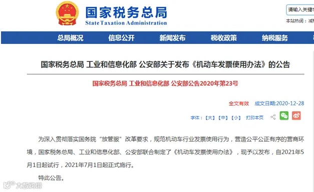 自2021年7月1日起,机动车销售启用新版增值税专用发票:相比传统的增值税专用发票,机动车发票中的增值税专用发票开具时会自动打印“机动车”标识。