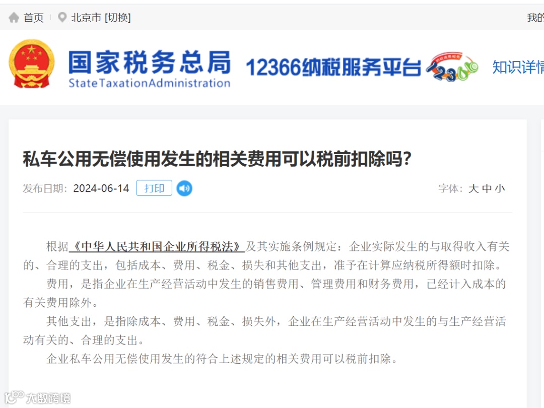 总局:私车公用无偿使用费用可税前扣除吗? 齐齐哈尔市畅友科技有限公司