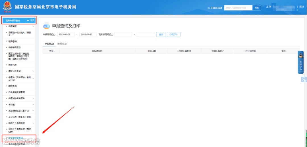 方法二:请您在主页点击:【我要办税】—【税费申报及缴纳】—【全渠道申报查询】(该功能可实现电子税务局申报及办税服务厅申报的两类申报数据,圴可在电子税务局查看、下载及打印申报表),此模块目前仅支持打印增值税(一般人、小规模)申报表和企业所得税预缴申报表(2018年2季度以后属期的)。