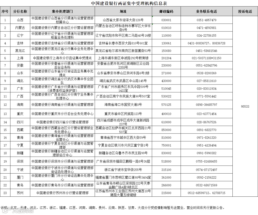 如有疑问或投诉建议,可致电受理机构或拨打中国建设银行客户服务热线95533。