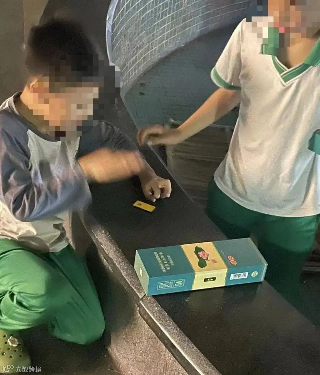 3月28日中午,在广州市海珠区某小学外一群小孩争抢地上他人丢掉的废弃烟盒,就为了制作“烟卡”。其中一位学生从兜中掏出一把“烟卡”,炫耀数量多、品牌丰富。
