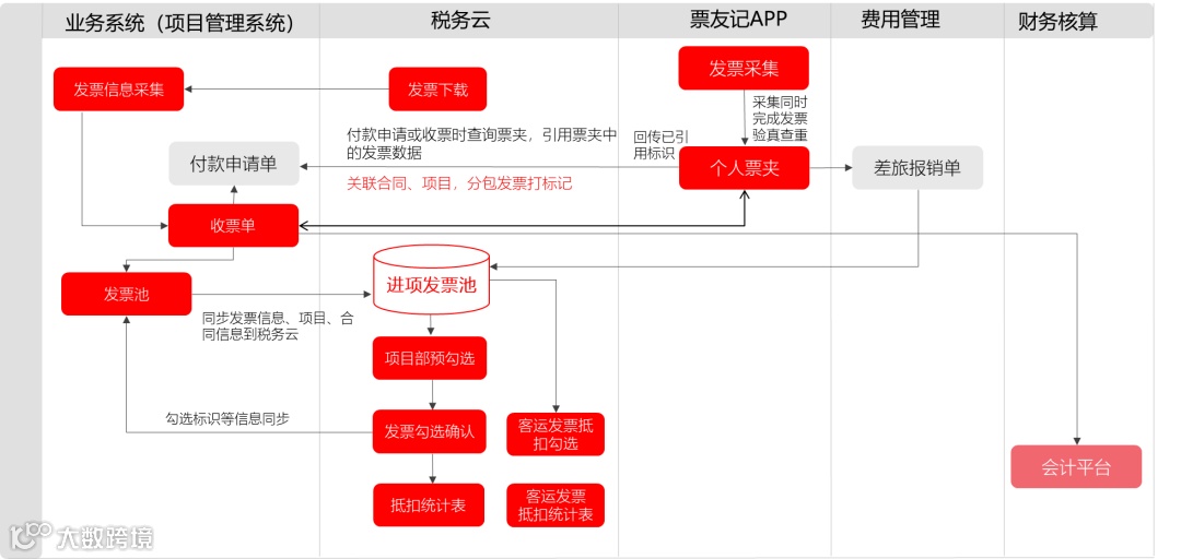 ①根据合同类型,进项发票采集时自动标记分包发票,用于增值税、所得税预缴扣除分包款时使用;