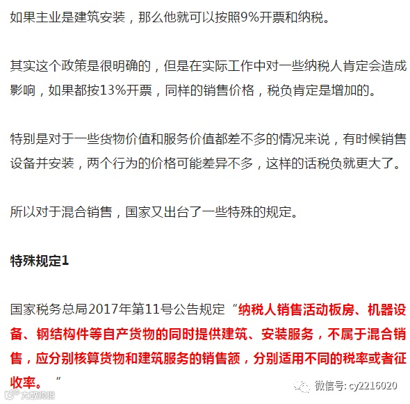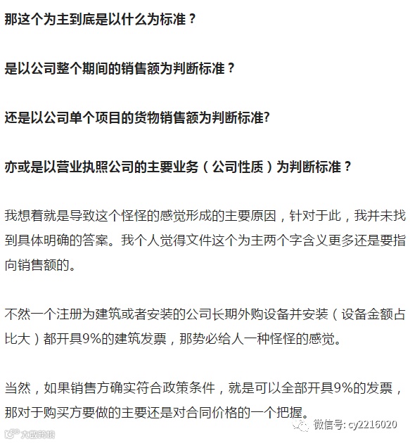 所以说,基本是一个销售机器设备并附带安装的公司,不管你的机器设备是自产还是外购,政策都给了你空间。