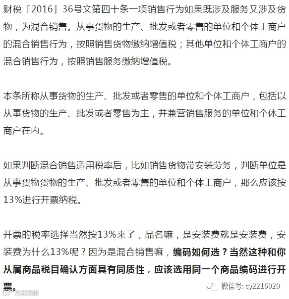 那么只有一种可能,那就是销售方是外购的设备,同时销售方并未按兼营原则核算,然后其按照其主营判断后按混合销售原则开具了发票。