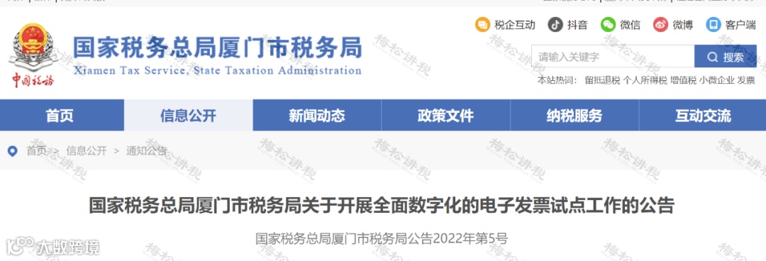 11月28日,厦门市税务局发布开展全面数字化电子发票试点的公告。