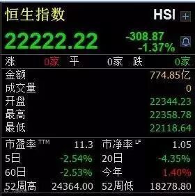 11月14日,香港股市呈现出一片疲态,下跌1.37%,香港恒生指数在当日收报22222.22点。这是港股历史上第一次出现这个巧合的收盘点位。一位资深投资者这样打趣道:“喜迎深港通,22222。”