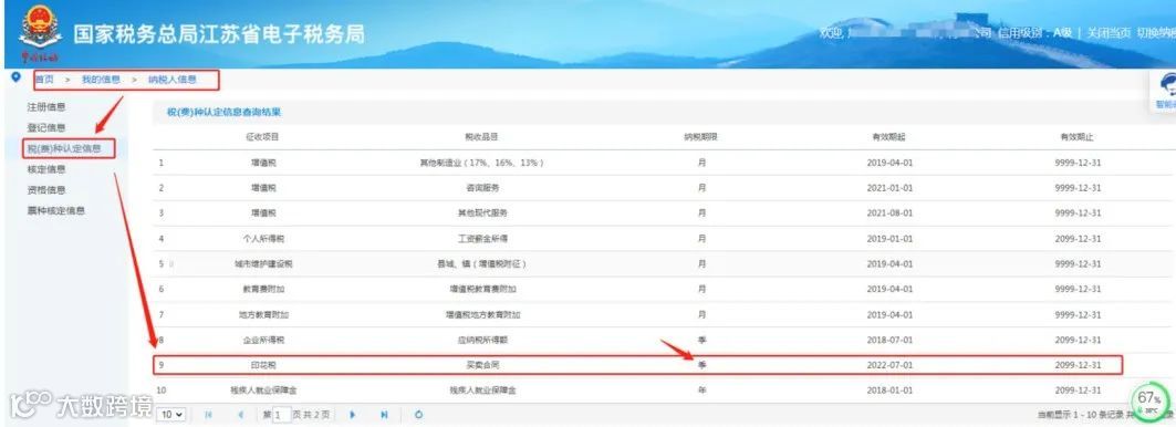 大家可以登录进电子税务局自行查看税费种认定信息,路径为我的信息-纳税人信息-税费种认定信息查询。