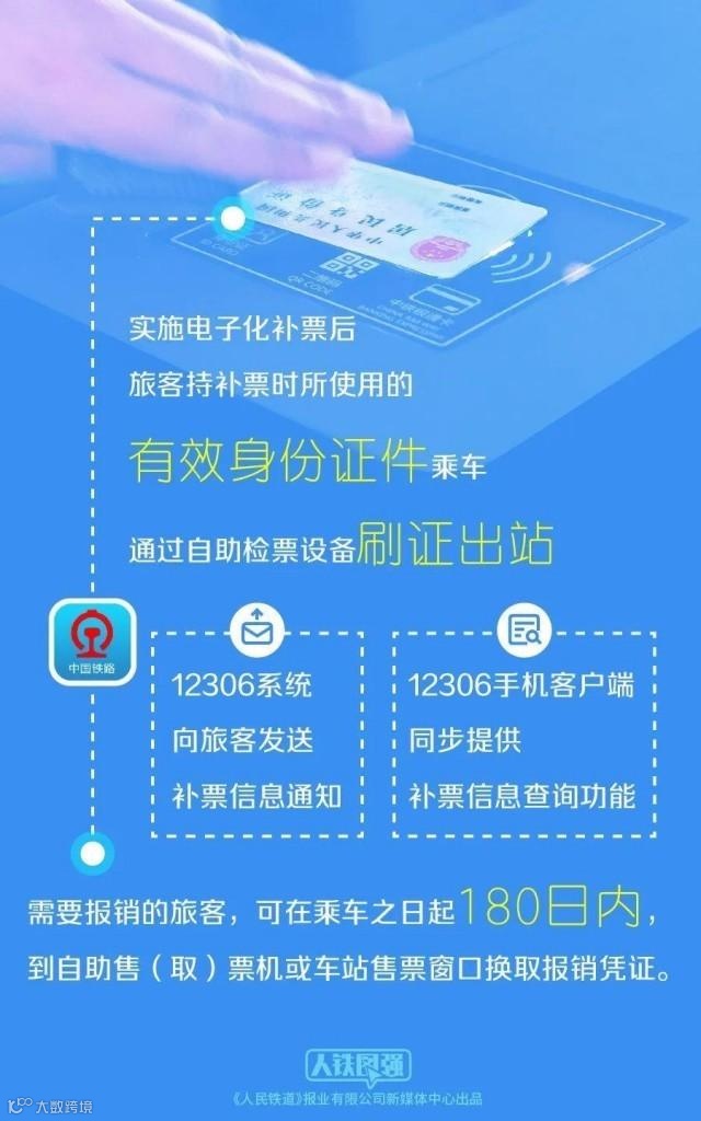 9月1日起,除少量市郊线路、边远支线外,全国铁路客运营业站与高铁动车组、普速旅客列车全面推广电子化补票。实施电子化补票后,乘车和出站凭证变为办理补票时所持的有效身份证件。