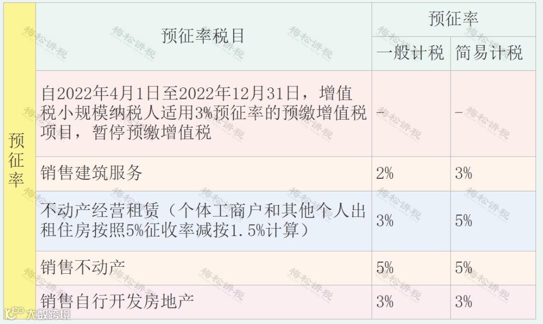 目前主要针对不动产和建筑行业采用预征办法,主要有5%、3%和2%的档次。
