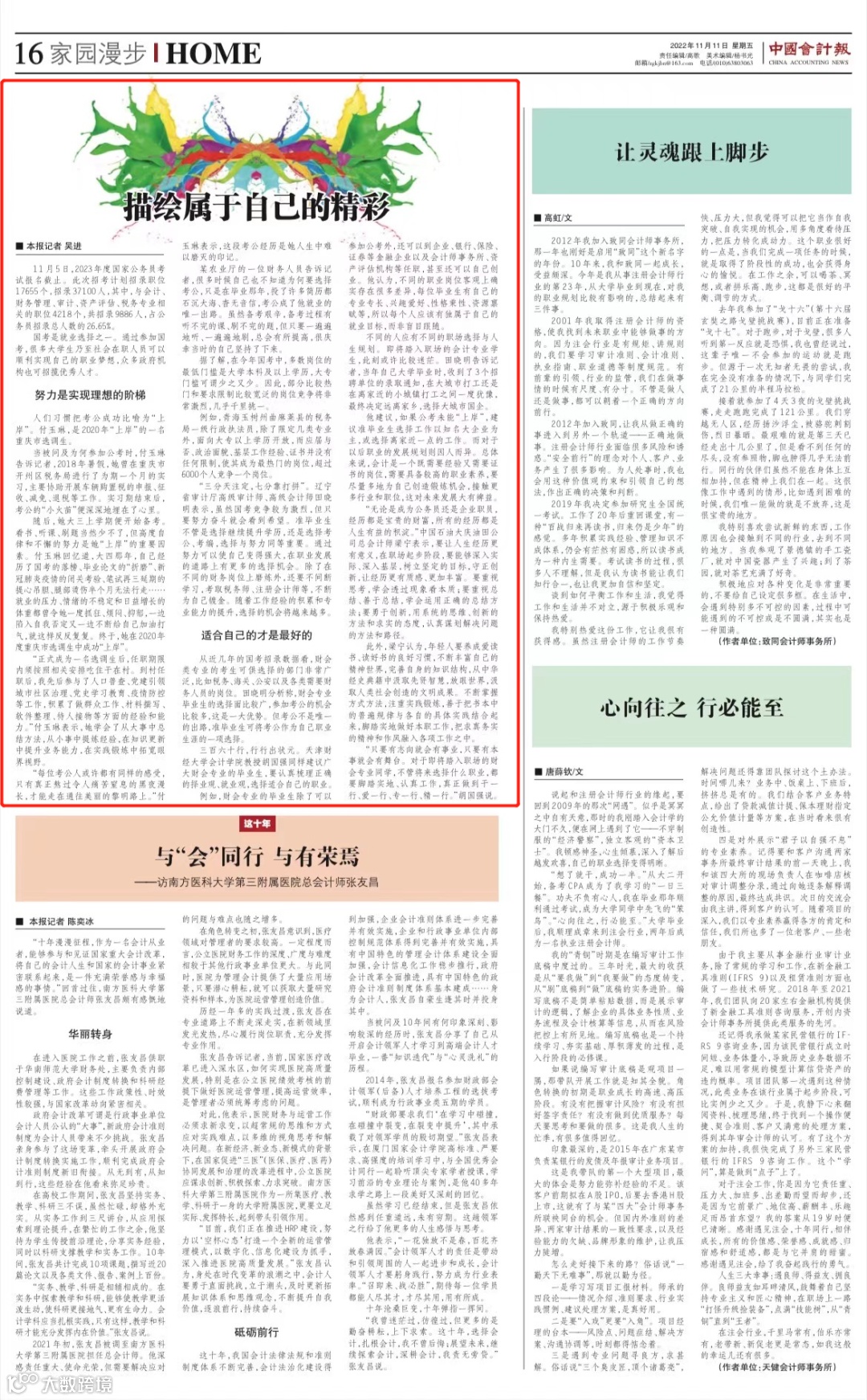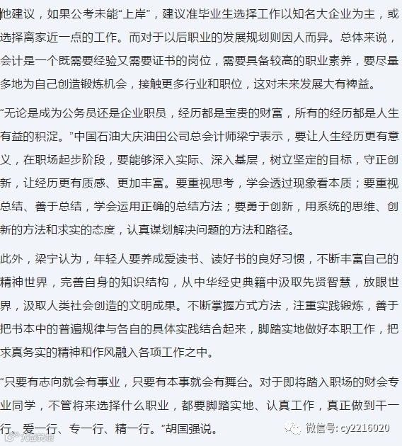 导读:努力是实现理想的阶梯适合自己的才是最好的来源:《中国会计报》11月11日16版编辑:陈奕冰文章版权归原作者所