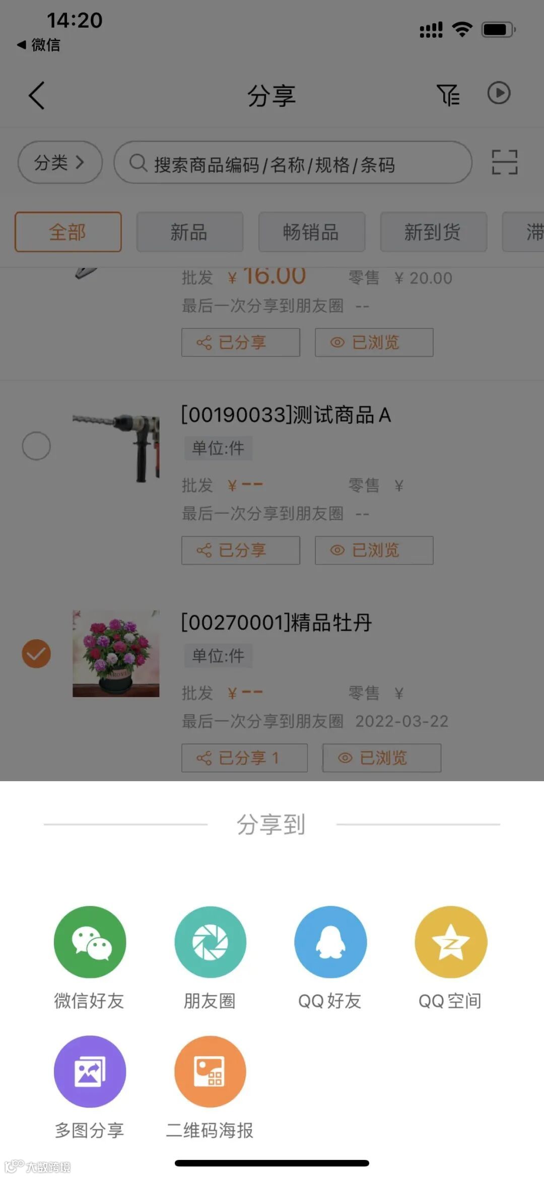 打开好生意点击【营销】——【产品分享】,找到需要分享的商品,选择分享的图片。