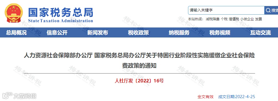 就在近期,税务局发布了对5个特困行业缓缴社保的正式文件: