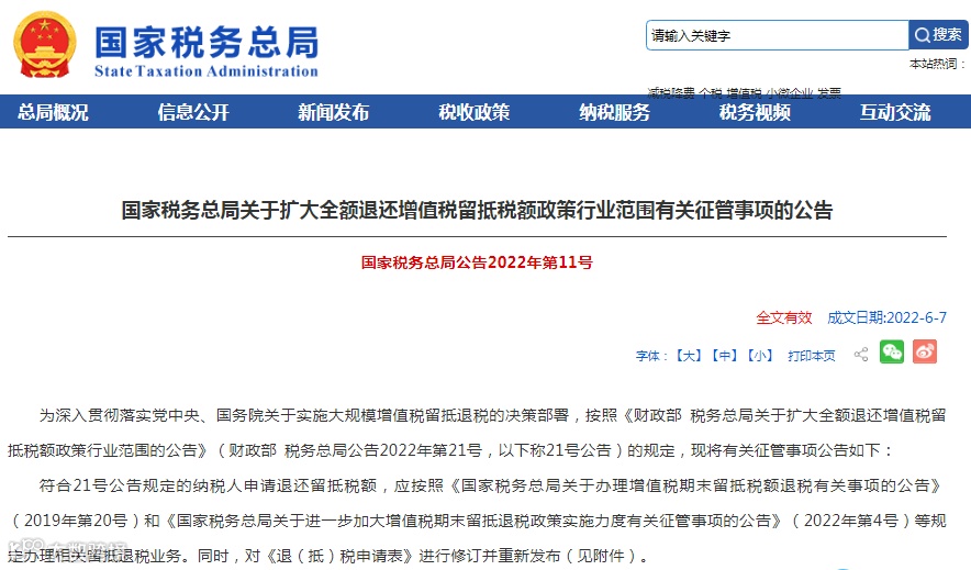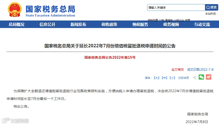1、新政:延长2022年7月份增值税留抵退税申请时间