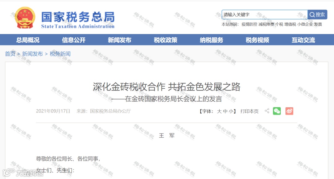 9月15日,在金砖国家税务局长视频会议中,国家税务局长王军在会议上发言:我国正向“以数治税”时期迈进,税务工作将进入一个新的时代,金税工程四期建设已正式启动实施!