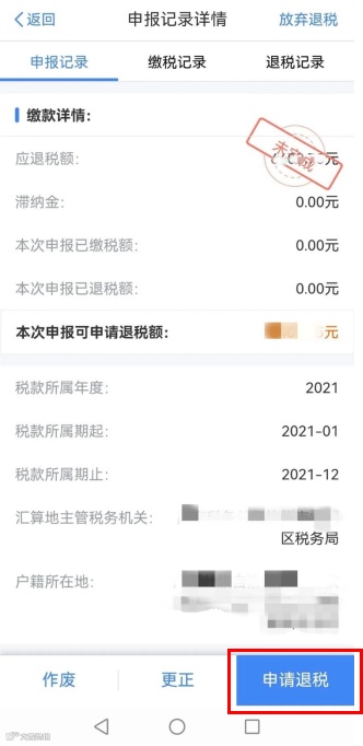点击“待申请退税”的申报记录,可以看到已申报的记录详情。