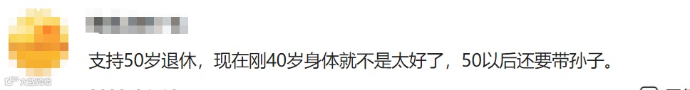 对此,网友表示:“支持50岁退休”“50岁退休正好,能再早点更好”!
