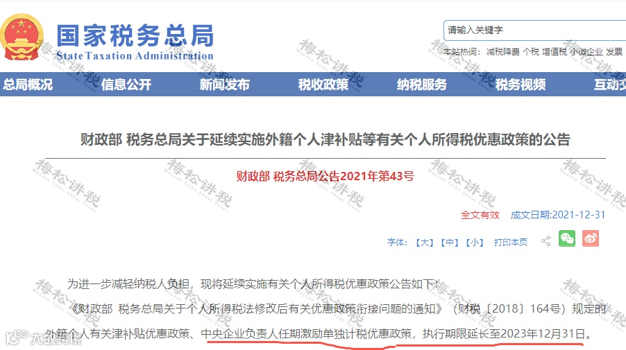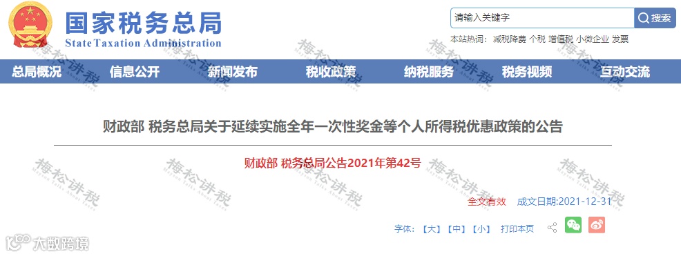文件中明确:全年一次性奖金单独计税优惠政策,执行期限延长至2023年12月31日。