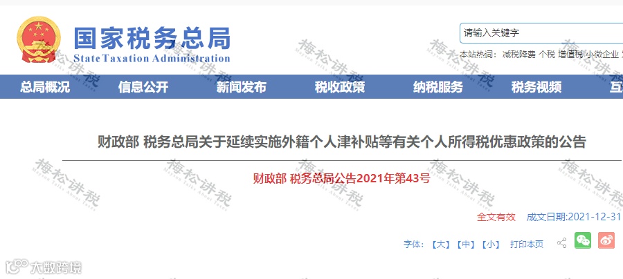 政策依据:财税〔2018〕164号、财政部 税务总局公告2021年第43号
