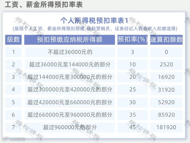 适用税率:以全年一次性奖金收入除以12个月得到的数额对照月度税率表确定: