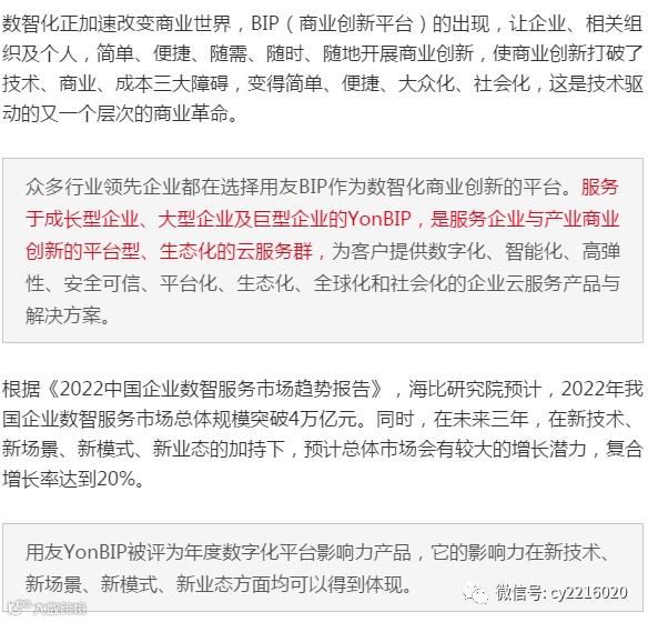 2022年,用友将继续发挥企业服务经验及数智化产品优势,通过用友BIP,让企业云服务随需而用,让数智价值无处不在,让商业创新如此便捷!
