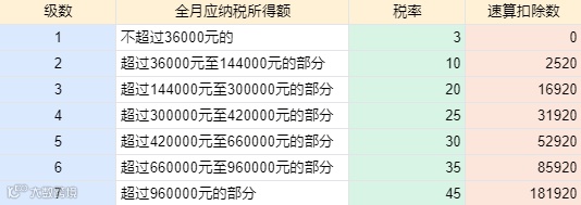 个税最新最全的税率表