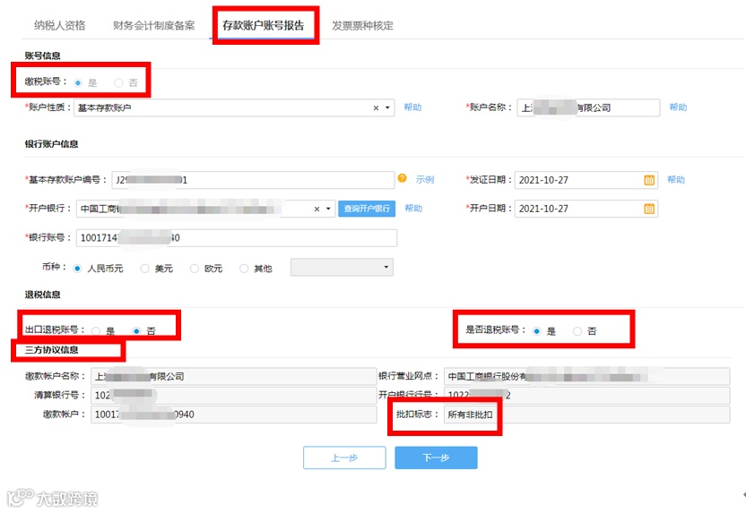 纳税人可选择填报企业已开立的基本存款账户信息,纳税人可选择在新办登记时选择签订三方协议,也可后续自行签订。签订三方协议时,存款账户默认为缴款账户,注意批扣标志为“所有非批扣”,如有修改后续可自行调整。