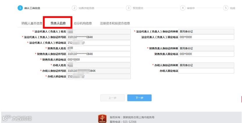 1. 一般企业这个模块涉及四个页签,分别是“纳税人基本信息”、“负责人信息”、“总分机构信息”、“注册资本和投资方信息”,部分字段是市监等部门采集并共享的,无法修改,若与实际不符,纳税人需前往市监部门核实有关情况,标“*”为必填项。