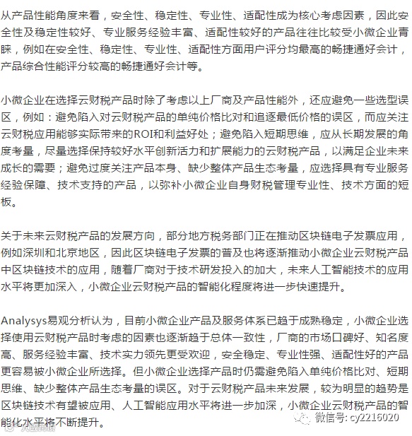 小微企业选择云财税产品时