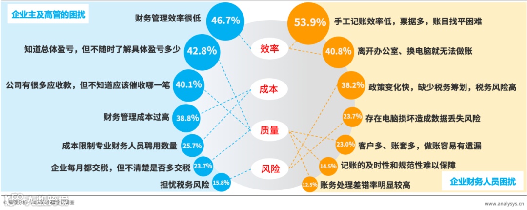 易观分析:十三五期间,中国营商环境持续改善,小微企业发展得到政策持续稳定扶持,预计未来十四五时期,政策红利将维持持续稳定的预期,小微企业的生存和发展条件将持续得到改善,小微企业以财税管理为核心的管理能力优化成为未来市场竞争力提升的关键路径。限于成本、质量等多方面因素的综合考虑,云财税形式成为解决当前小微企业财税管理问题,实现小微企业财税管理规范化、数字化、智能化升级的最有效工具。