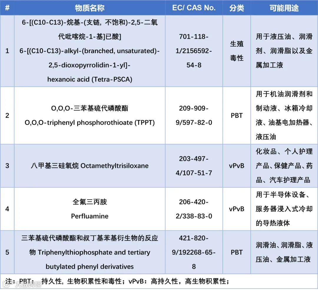 2025年1月21日,欧盟化学品管理局(ECHA)将第32批5项物质纳入SVHC候选物质清单,高度关注物质(SVHC)清单正式更新至247项。