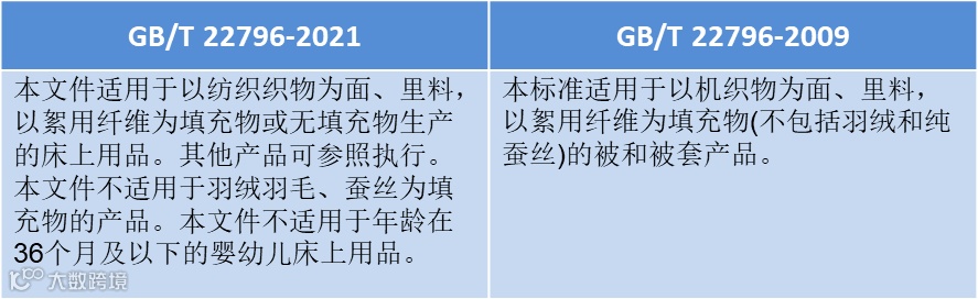 新标准GB/T 22796-2021《床上用品》代替了GB/T 22796-2009《被、被套》、GB/T 22797-2009《床单》、GB/T 22843-2009《 枕、垫类产品》、GB/T 22844-2009《配套床上用品》、GB/T 22855-2009《拉舍尔床上用品》,主要技术变化如下: