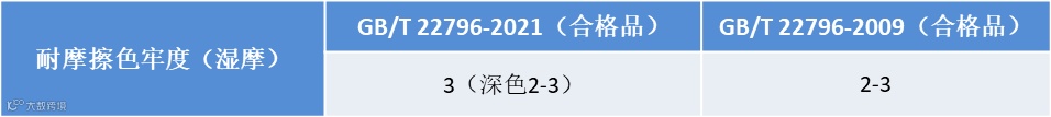 8. 新标准修订了耐摩擦色牢度合格品 浅色织物的色牢度考核指标。