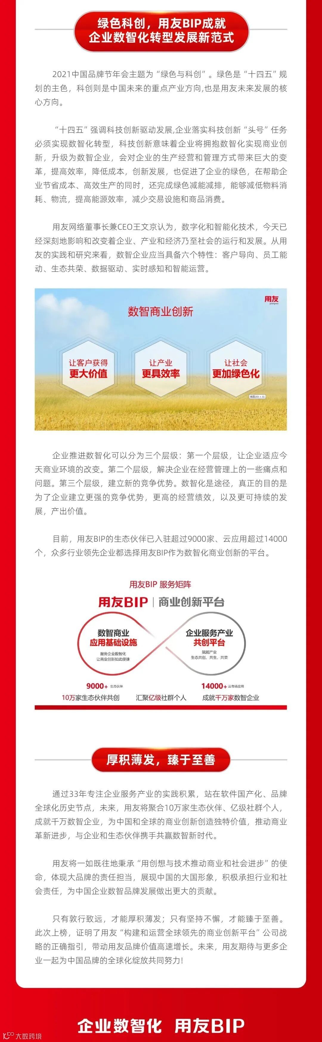 用友品牌价值再获认可,荣膺2021中国品牌节最高荣誉“华谱奖”