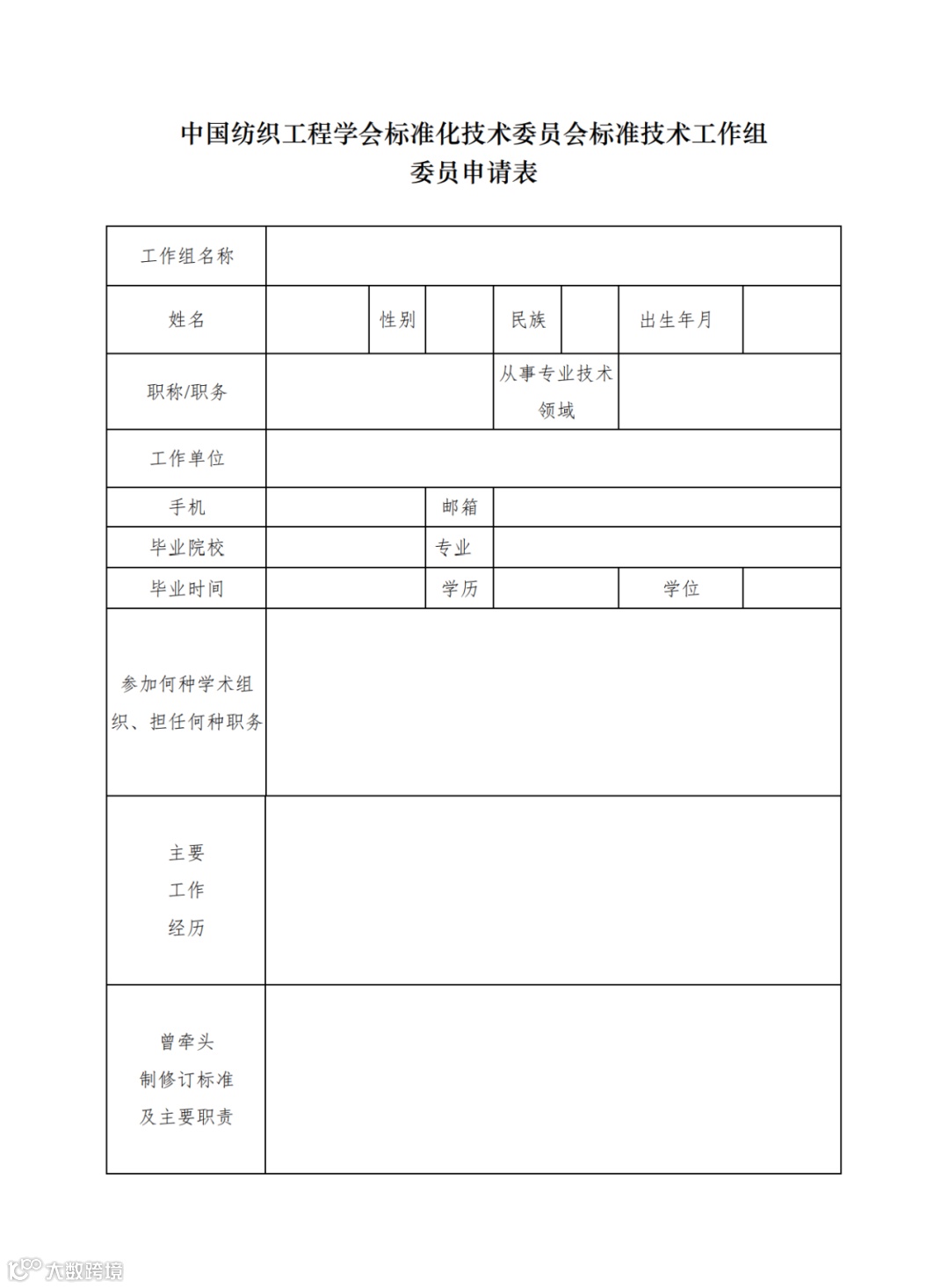 关于公开征集第二届中国纺织工程学会 服装及辅料配件标准技术工作组委员的通知