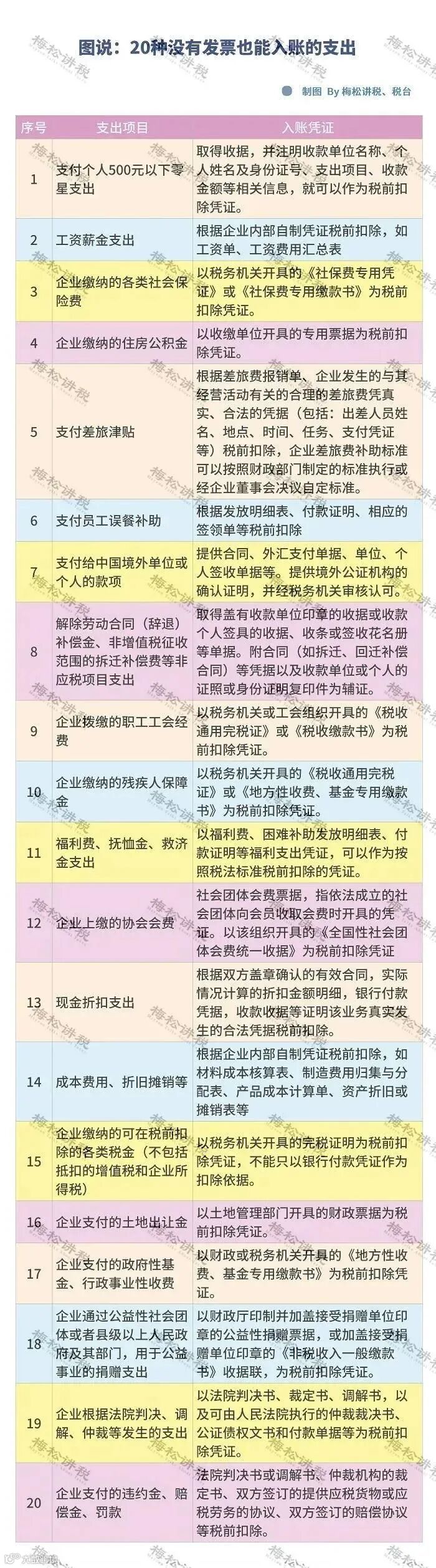 小编整理了20种没有发票也可以入账的情形,供大家参考: