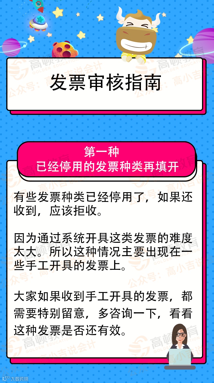 以上五种类型为审核发票过程中较为常见的发票问题。具体工作中还会存在各种各样的情况,这就需要我们时刻留心,熟读相关法律,遇到拿不准的情况及时咨询当地税务机关。