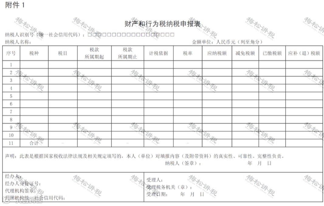 纳税人申报财产税和行为税时,不再单独使用分税种申报表,而是在一张纳税申报表上同时申报多个税种。