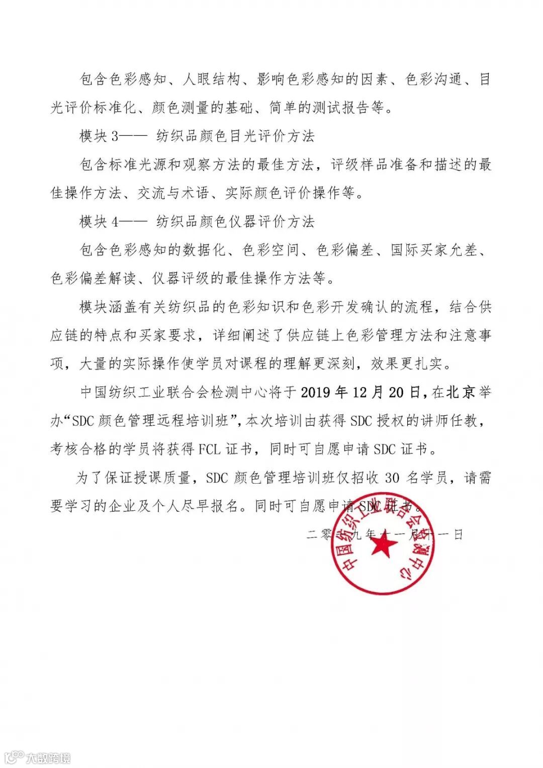 课程根据个人角色和职责分为4个模块,涵盖有关纺织品的色彩知识和色彩开发确认的流程,结合供应链的特点和买家要求,详细阐述了供应链上色彩管理方法和注意事项。