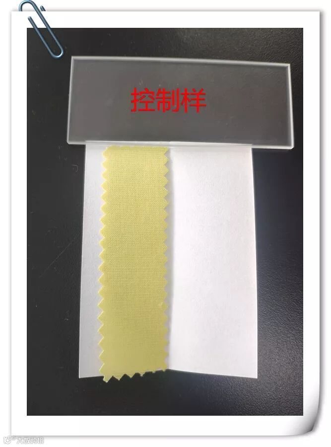 用评定用沾色用灰卡评定控制织物的泛黄程度,若黄变级数等于小于3级证明试验有效;若黄变级数大于3级,则取新的试样和控制织物重新试验。