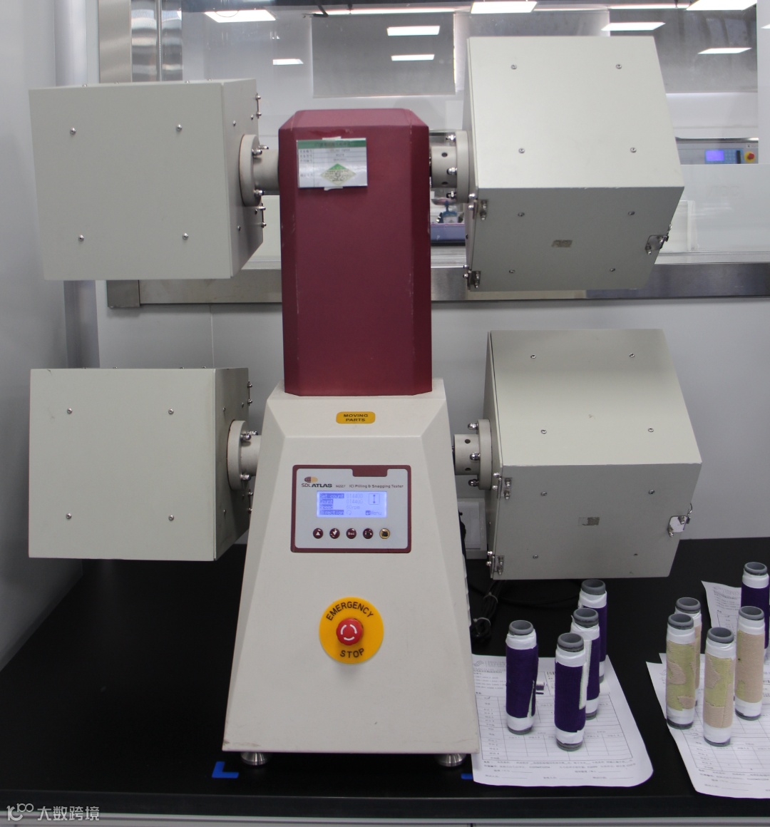 试验前后检查重锤上的钨针是否有脱落缺少和尖端是否有断裂,定期对转动轴承进行清洁,防止纤维残留物,纱线残留在轴承上,造成转动卡顿,转速异常,定期对机器内部的传动链条进行清洁,添加润滑油。