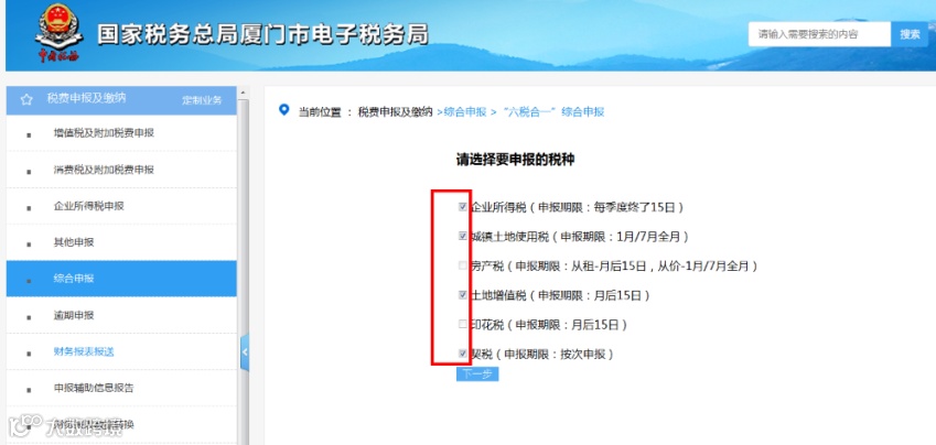 (1)北京10月1日起,需申报缴纳企业所得税(预缴)、城镇土地使用税、房产税、土地增值税、印花税中一个或多个税种时,可选择综合申报。
