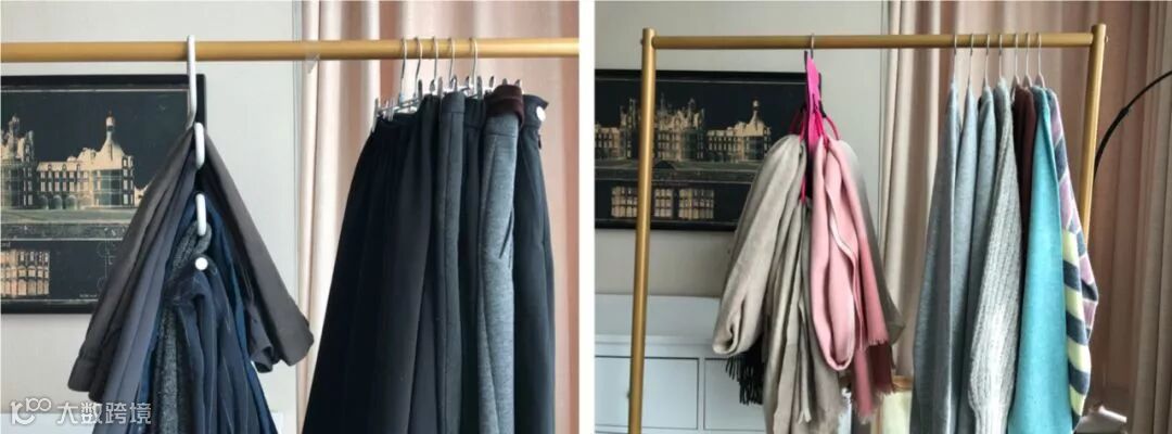 所以不要再入这些“收纳神器”的坑了,买回去就闲置在小编看来才是最大的浪费。如果是裤子就用专门的裤夹夹起来,如果是围巾,比如羊绒围巾可以卷起来放在抽屉里,一来方便找,二来也不会因为长时间悬挂,而导致带的时候有一个折叠的痕迹。