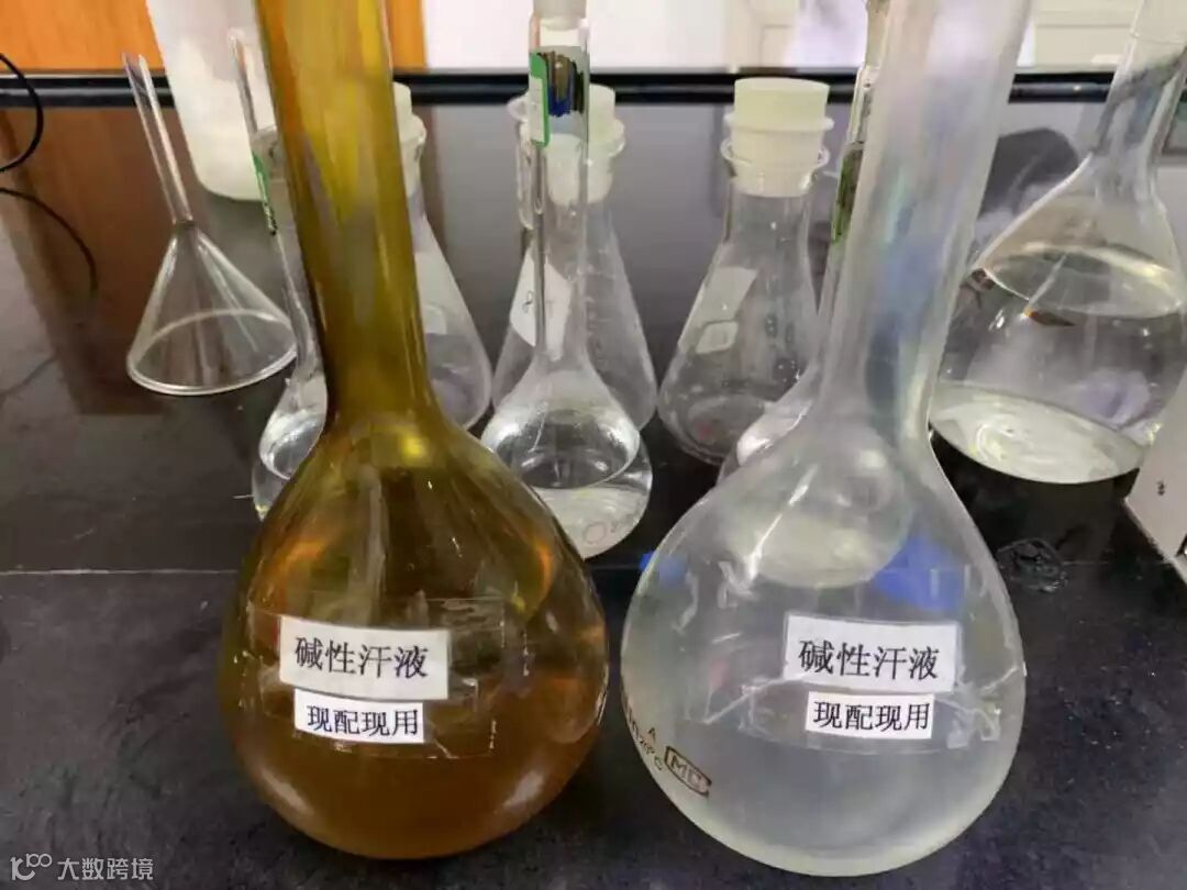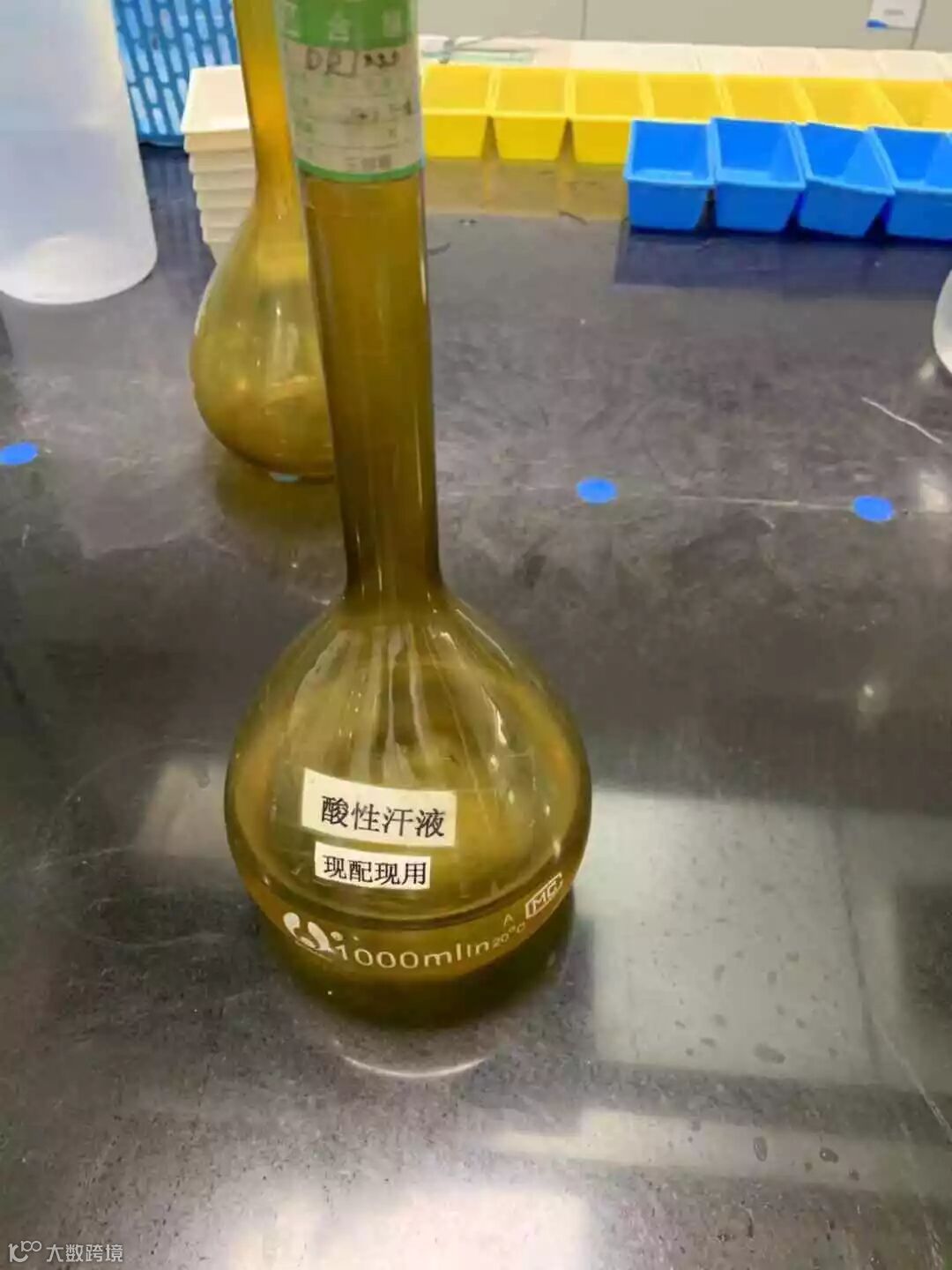 (图3、图4 仿照汗液配置的汗渍溶液)