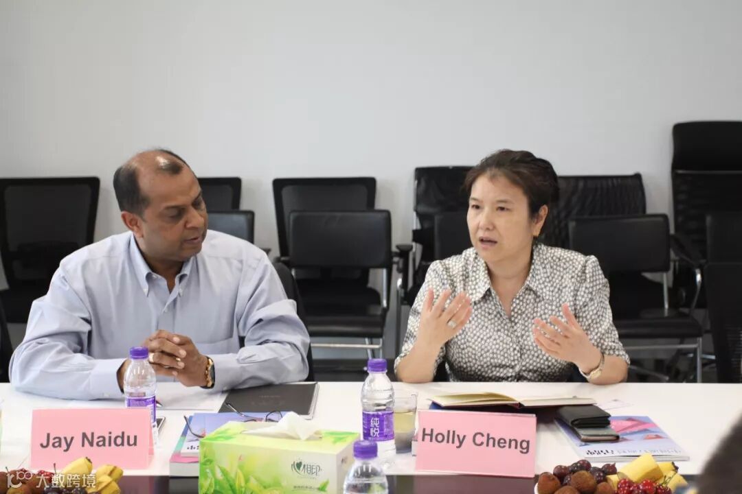 乔艳津主任向亨斯迈代表团介绍了中国纺织信息中心的主营业务及发展情况,并与Jay Naidu先生就接下来的合作方向交换了意见。