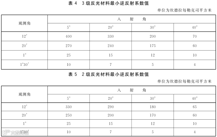 在我国现行标准GB 20653-2006《职业用高可视性警示服》中,就有对不同等级的反光材料作出相关规定: