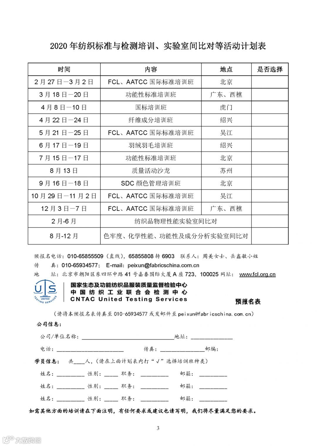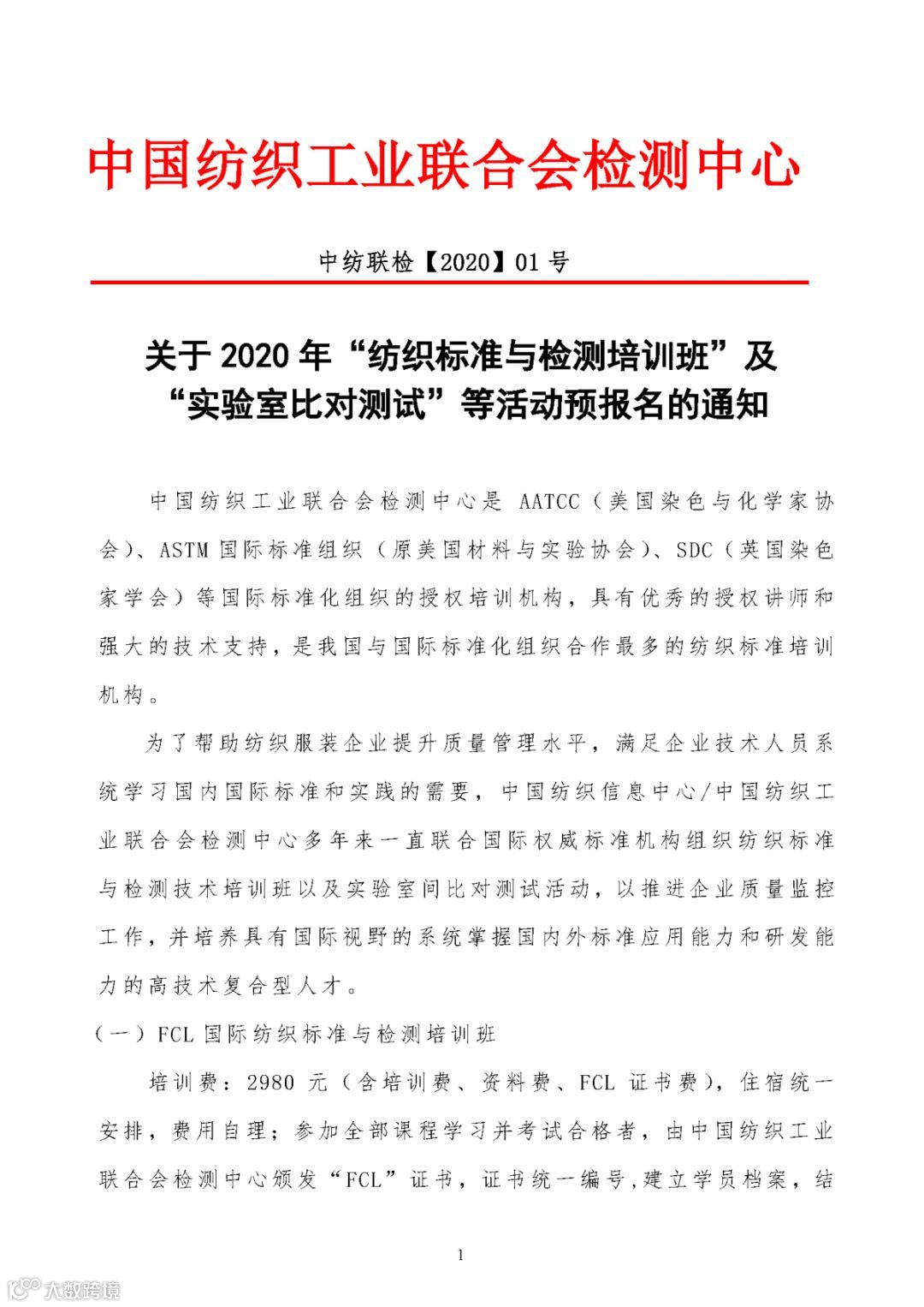 2020年“纺织标准与检测培训班”及“实验室比对测试”等活动预报名开始啦!