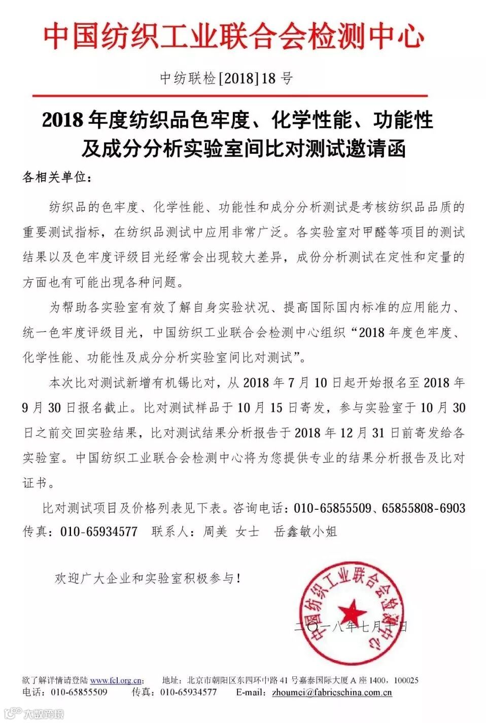 为帮助各实验室有效了解自身实验状况,提高国际国内标准的应用能力、统一色牢度评级目光,中国纺织工业联合会检测中心组织“2018年度色牢度、化学性能、功能性及成分分析实验室间比对测试”。