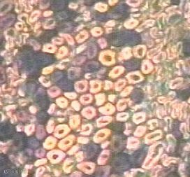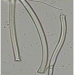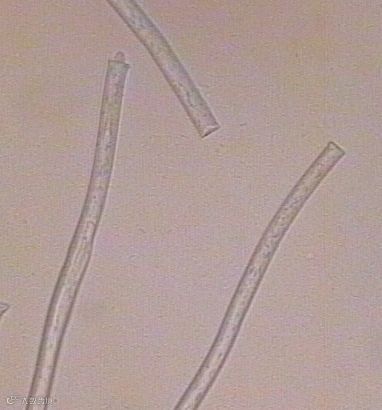 纵面形态:鳞片较小,与纤维纵向呈倾斜状,髓腔有单列、双列、多列。