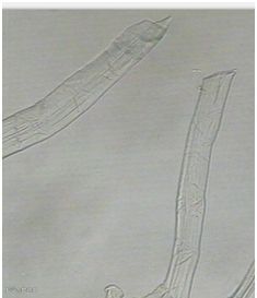 纵面形态:纤维较粗,有长形条纹及竹状横截。