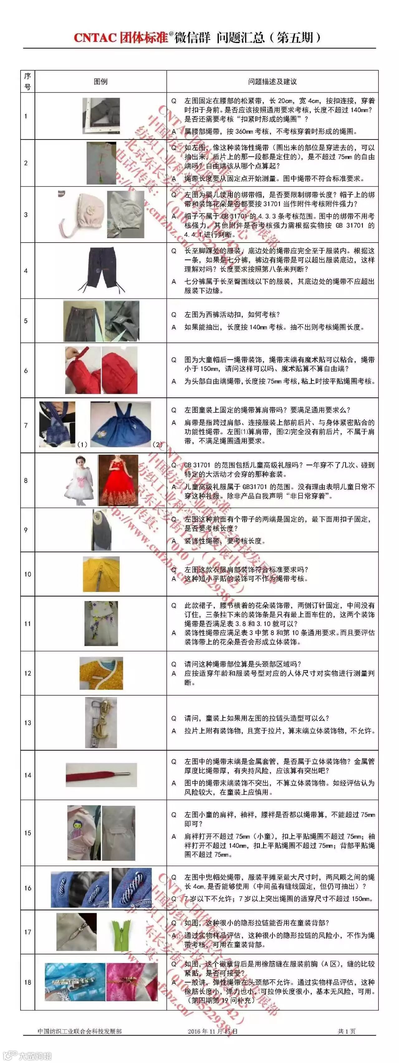 CNTAC团体标准微信群问题汇总又有更新啦!小编整理截止到目前的第1-8期,特意分享给大家,希望可以加深大家对GB 31701-2015《婴幼儿及儿童纺织产品安全技术规范》关于绳带的理解。